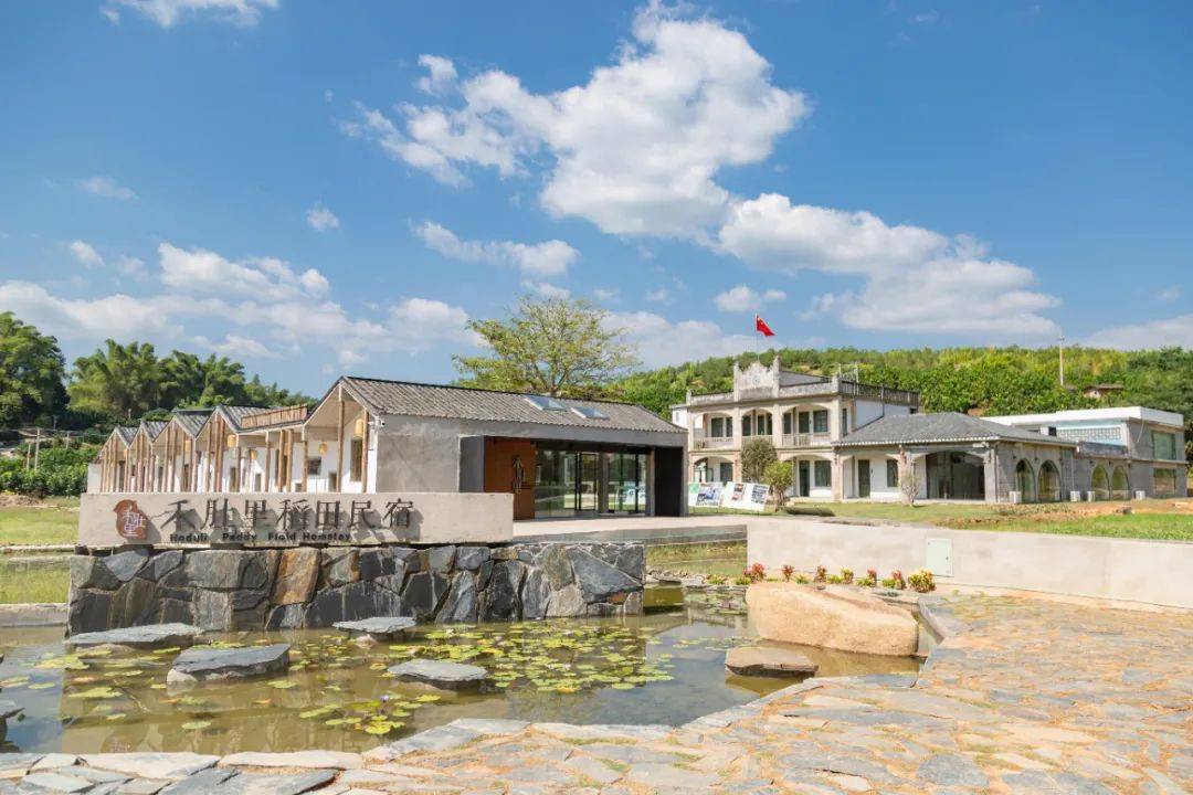 走進了位于梅州大埔縣西河鎮的禾肚里稻田民宿。詩意禾肚里,心靈棲息地。以農耕文化為載體,以稻田、溪流、花草、蜜柚等為主題特色,與村里的其他人文景觀“串珠成鏈”,為游客提供沉浸式體驗鄉村美景和民俗文化之余的休憩之處。